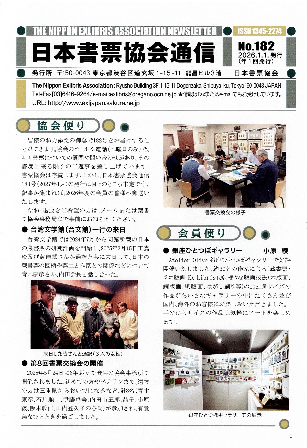 The Nippon Exlibris Association Newsletter No. 182 (January, 2026)